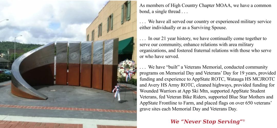 We conducted our 19th Annual Veterans’ Day event at Boone Mall on Tuesday, 11 Nov 2025. Although our attendance was down a bit due to weather, our guests had the opportunity to remember and honor all our veterans with a inspiring invocation from Chaplain Jim Fisher and appropriate Veterans’ Day remarks from LTC Zack Jones, Professor of Military Science, AppState ROTC.