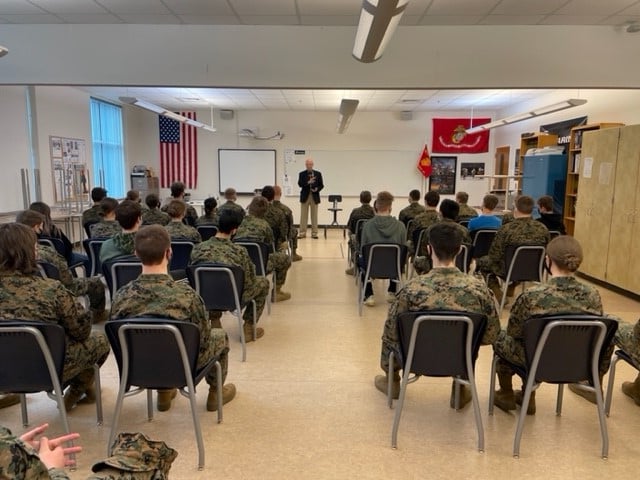 During the 5 weeks in October, our Chapter representatives presented the lecture series to Watauga High School MCJROTC Cadets.